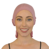 Discover comfort redefined with the Chemo Beanies® Taylor Scarf, a distinctive accessory handcrafted in the USA to support women navigating hair loss due to serious health challenges. This Pink Lemonade Ribbed Soft Jersey Knit scarf is thoughtfully designed to offer a feminine silhouette that mimics the gentle volume of natural hair, providing a subtle yet empowering look. Handmade in America with premium ribbed fabric, it features a unique elastic fit that ensures a secure, slip-on experience without the fuss of tying or adjustments. Ideal for cancer patients and survivors, this scarf alleviates daily concerns with its breathable, stretchy jersey knit that combines softness and durability, making it a standout option in medical headwear and cancer scarves.