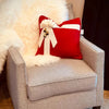 Christmas Wool Throw Pillow – Red Bow Design With Bells | Made in USA