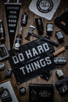 Crafted for those who embrace challenge and determination, this "Do Hard Things" banner embodies the spirit of resilience and achievement. Handmade in the USA, this bold 36" by 24" banner is crafted from durable, outdoor-grade waterproof vinyl designed to withstand the elements while displaying an empowering message. Perfect for sports fans and enthusiasts alike, this American-made banner serves as a striking declaration of grit and perseverance that’s ideal for enhancing your collection of sports fan accessories or personalizing any space with rugged charm.