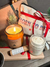 Gift Set Includes: Frosted Pines Candle, Pine & Musk Body Butter, Sweet Peppermint Lip Balm, Born To Be Free Travel Pouch