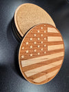 Set of 4 American Flag Hardwood Coasters 3.5 Inch Diameter – Laser Cut Barware | Made in USA