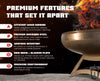- Warranty: Lifetime warranty on steel bowl’s structural integrity, ensuring your fire pit won’t rust through, warp, or rot