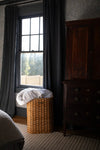 Redefining functional elegance, the Mama's Basket Hamper brings a fresh perspective to traditional laundry storage. Handcrafted in the USA by skilled Amish artisans in Pennsylvania, this large-capacity basket combines timeless materials with practical design. Made from seagrass roping, wood, willow, and reed, the hamper proudly features full grain leather handles and solid brass hardware, delivering durability and a touch of refined craftsmanship. Its upright structure not only eases transportation but also adds an inviting rustic charm to any corner of your home. This American-made hamper is perfect for those seeking an heirloom-quality laundry basket that merges storage solutions with artisanal beauty.
