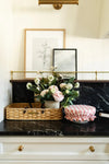 Perfectly suited for gathering blooms, herbs, or even carrying your lunch, this Flower Gathering Basket blends rustic charm with practical design. Handwoven by skilled Amish artisans in Pennsylvania, this American-made basket features a natural combination of seagrass roping, wood, willow, and reed, reflecting traditional craftsmanship nurtured through generations. With full grain leather handles and solid brass hardware, it offers a sturdy yet elegant way to bring the outdoors inside. Crafted in the USA, this basket is designed not only to sit beautifully on your shelf but to also withstand everyday use while adding a comforting touch of handmade, Pennsylvania heritage to any home or garden setting.