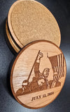American Hardwood Coaster Set 3.5 Inch Diameter – Patriotic Laser-Cut Barware | Made in USA