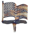 Express your patriotism with this handcrafted coat and towel hook made in the USA, designed to bring a bold American touch to your home. Skillfully cut from 1/8" steel, this distinctive hook features a waving U.S. flag silhouette that doubles as a functional and decorative piece. Handmade in the USA, this American-made hook is perfect for adding practical flair to your entryway, bedroom, or bathroom—a rustic accent that celebrates craftsmanship while keeping coats and towels neatly organized.