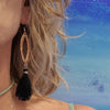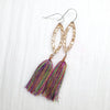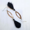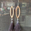 - Materials: Embossed copper frames, hand-wrapped silk tassels, 14K rose gold filled filigree half rounds, sterling silver ear wires, sterling silver components