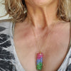 Experience a burst of joyful elegance with this Super Sparkly Crystal Pillar Pendant, handcrafted in the USA with meticulous care in Montana. This artisan jewelry piece shines brilliantly with 44 carefully bead-woven Swarovski crystals that blend stunning green, blue, and rose hues into a lively and uplifting color palette. Made in the USA, this pendant serves as a radiant charm designed to celebrate life’s everyday moments with a touch of sparkle and positivity. The geometric pillar shape, measuring 2 1/2 inches tall by 3/4 inch wide, features a hollow crystal structure that enhances its dimensional shimmer, making it a captivating addition to any jewelry collection. Whether you’re drawn to its lively color composition or its artisanal craftsmanship, this unique pendant embodies the essence of American-made charm and purposeful design.