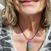 Handmade Crystal Pillar Pendant Necklace – Green Blue Rose Swarovski | Made in USA