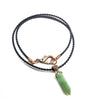 Discover artisan elegance with this vegan-friendly wire wrapped pointed crystal necklace, handcrafted in the USA, specifically made in Montana. Each piece showcases a beautifully pointed gemstone crystal pendant, wire-wrapped with copper in intricate coils, blending rustic artistry with modern style. Designed for those seeking ethically made jewelry, this necklace features super soft, vegan-friendly bolo braided cotton cords, offering comfort and durability without compromising on sustainability. Ideal for lovers of unique, handcrafted jewelry, this necklace fits seamlessly into any jewelry collection, serving as a meaningful accent or a thoughtful gift. Celebrate Montana craftsmanship while enjoying the natural beauty and energetic qualities of your choice of gemstone.
