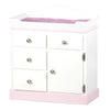 Designed to delight young caregivers, this Amish-made Wooden Doll Changing Table from Rebekah's Collection offers a charming and functional play accessory that encourages imaginative nurturing. Handcrafted in the USA by the skilled artisans at Lapps Toys and Furniture in Lancaster County, Pennsylvania, this doll changing table is built to last with time-honored Amish woodworking techniques. Made to accommodate 18" dolls, it features genuine working drawers and a cozy cupboard, providing ample space for doll clothes, diapers, and playtime essentials. Finished with a child-safe coating, this durable piece measures 32" long, 15.5" wide, and 29" high, making it an ideal size for little hands to practice caretaking skills. Fully assembled on arrival, it blends the warmth of Old-World craftsmanship with contemporary play needs, bringing a wholesome American-made touch to your child's nursery play area.