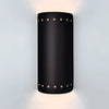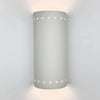 The Kythnos Sconce is a sleek, perforated, cylindrical flush wall light designed to elevate any space with its sophisticated up-and-down light projection. Its open top and bottom create dynamic lighting effects, making it an ideal choice for guest bathrooms, grand entryways, outdoor patios, and architectural accents. Designers appreciate the ability to specify custom finishes to complement their color palettes and often pair it with other fixtures from our Islands of Light Collection for a cohesive look. This versatile sconce supports energy-efficient LED and smart bulbs, offering both style and sustainability. Each piece is handcrafted by skilled artisans in the USA with meticulous attention to detail, ensuring exceptional quality and durability for years to come.