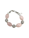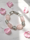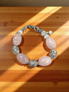 Handcrafted Rose Quartz Bracelet – Clear Crystal & Stainless Steel Rose Beads | Made in USA