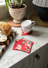 Whether used to safeguard your table during intimate coffee moments or lively dinners with friends and family, this Fabric Coaster Set offers long-lasting style and comfort. Handmade in America, these coasters bring a heartfelt connection to tradition and quality that enrich any home.