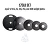 - 175lb set: Pair of 2.5, 5, 10, 25, and 45 lb plates