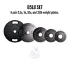 - 85lb set: Pair of 2.5, 5, 10, and 25 lb plates