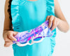 Pastel Swirl Swim Goggles – Tangle-Free Strap, Purple Lenses, One Size Fits Kids to Adults | Assembled in USA