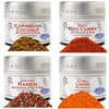 - Set Includes: Caribbean Coconut Rub, Spicy Red Curry Seasoning & Rub, Shichimi Ramen Seasoning & Meat Rub, Chili Limon Seasoning