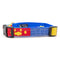 Show off your team spirit with this vibrant Game Day dog collar, handcrafted in the USA. Designed with colorful, hand-woven fabrics, this American-made collar captures the excitement of every ball game—from youth leagues to the pros. Handmade in Auburn, New York, the collar combines an artisanal pattern with robust construction, backed by durable nylon webbing for long-lasting use. Whether your pup is cheering from the stands or strutting around town, this collar blends style with strength, thanks to a solid brass buckle and a reliable plastic side-release clasp. Beyond its functional appeal, each collar supports the women artisans who skillfully weave these distinctive designs, making it a meaningful choice for pet owners who value craftsmanship and purpose in every accessory.