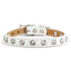 Designed to blend classic elegance with comfort, this Tuscan Mini collar shines as a unique accessory handmade in the USA. Crafted from supple Tuscan leather, renowned for its softness and durability, it features a narrower 3/8" width tailored specifically for smaller dogs. What sets this American-made dog collar apart is the breathtaking line of genuine Swarovski crystals meticulously embedded along its length, adding a layer of luxury and sparkling charm perfect for pet owners seeking both practicality and style. Offering sizes in 8" and 10", this collar promises a refined fit while maintaining a lightweight feel, ideal for delicate necks without compromising on resilience. The Tuscan Mini is a sophisticated choice for small-breed dogs who deserve the highest standard in both craftsmanship and aesthetics.