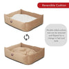 Our pet beds are made to order in the USA, ensuring each one meets our high standards of quality and craftsmanship. Using a blend of local and imported materials, we create durable, comfortable, and stylish beds that your furry friends will love. Each bed is carefully crafted to provide the ultimate resting spot for your pet, combining functionality with premium design.