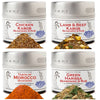 - Complete Kabob Collection includes: 4 tins featuring Chicken Kabob, Lamb & Beef Kabob, Green Harissa, and Taste of Morocco seasoning blends.