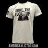 Whether you're elevating your casual wardrobe or seeking a standout gift for someone who values authentic American-made apparel, this exclusive Grimzy-STFU tee makes a powerful addition. Embrace the spirit of collaboration and American craftsmanship with a shirt that speaks volumes and lasts a lifetime.