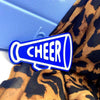 - Color: Bold blue megaphone design with clear "CHEER" lettering