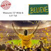 Embody the spirit of your favorite team with this dynamic Sports Believe Sign, handcrafted in the USA. This American-made decorative piece shines in vibrant green and gold, designed to inspire confidence and team pride wherever it is displayed. Whether it's mounted in a home office, a locker room, or used as spirited wall art, this durable sign brings an authentic gameday atmosphere to any space. Created using advanced 3D printing technology, it features precise detailing and a smooth finish, reflecting the superior craftsmanship you expect from a product carefully made in the USA. Measuring approximately 12 inches wide by 6 inches tall, it offers a perfect balance of presence and subtlety for sports fans eager to show their unwavering support.