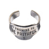 Introducing a statement piece that redefines symbolic jewelry: the Be Faithful Promise Ring, handcrafted in the USA from recycled, lead-free pewter. This American-made treasure delivers a fresh twist by blending the familiar with the unexpected—its design cleverly transforms the concept of a cuff bracelet into a ring you can wear every day. Ideal for those seeking a meaningful accessory that embodies faith and commitment, this adjustable open ring fits most adults comfortably while conveying an inspiring message engraved with the promise to “Be Faithful.” Designed by Whitney Howard, whose passion for weaving together fashion and heartfelt inspiration is evident in every hand-spun detail, this ring stands out as both a personal reminder and a timeless gift idea made in the USA.