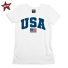 Celebrate your American pride with this handcrafted in the USA women's cotton crewneck t-shirt, thoughtfully made from 100% American grown combed ring-spun cotton. This lightweight and breathable tee is designed to keep you comfortable while showcasing bold patriotism with its vintage-inspired "USA" graphic and classic flag emblem. Perfect for sporting on Independence Day or as an everyday expression of loyalty, this American-made shirt embodies craftsmanship and quality that stands out in the realm of patriotic apparel.