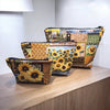 Autumn Sunflower Cosmetic Bag Set – Small, Medium, Large Makeup Pouches | Handmade Cotton | Made in USA