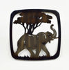 Introducing a distinctive addition to your kitchen accessories, this Bull Elephant Trivet is handcrafted in the USA to combine both artistry and functionality. Carefully crafted in the USA by skilled artisans, this American-made trivet is more than just a hot plate—it serves as a protective barrier shielding your counters and tabletops from heat damage, burns, and scratches caused by hot pots and pans. Its unique elephant silhouette framed by a tree adds a captivating touch of rustic charm and wildlife-inspired décor to your dining space, making it an ideal statement piece for those who appreciate nature-themed design accents. Each trivet undergoes an individual heat treatment by hand, ensuring durability and a rich, antiqued finish that enhances its visual appeal while safeguarding against wear.