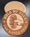 Hold My Beer Hardwood Coaster Set 3.5 Inch Diameter – Laser Cut Barware | Made in USA