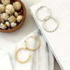 Designed to captivate with their distinctive charm, these Silver Pointe Hoops are a testament to fine American craftsmanship, handcrafted in the USA with utmost precision. Featuring the iconic Sarah Cecelia Pointe motif, each pair is meticulously hand cut in wax before being cast in brass through the lost wax casting process—an artful technique that ensures exquisite detail and durability. These hoops are then beautifully hand polished and plated in sterling silver or 14K gold with 14K gold fill ear hooks for a luxurious finish. Perfectly sized at approximately 1 5/16" in diameter, these earrings strike the ideal balance between statement and everyday elegance. Offering a fresh take on classic hoop earrings, they elevate any jewelry collection with their unique zigzag silhouette and high-quality materials.
