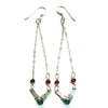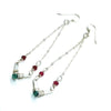Sterling Silver Chevron Dangle Earrings – Hot Pink Green Gemstones | Made in USA