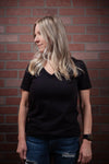 Women's Black Cotton V-Neck Tee – Combed Ring-Spun Cotton | Made in USA